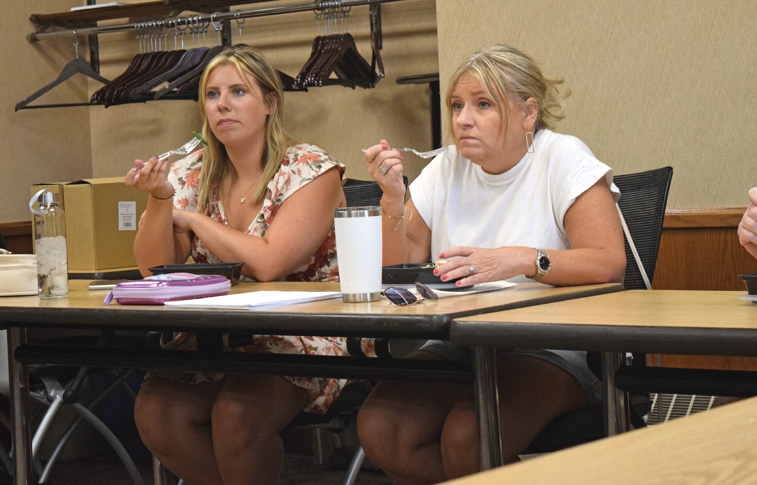 Attendees of the community class at Ohio University Southern on Monday sample the meal during the cooking class. (The Ironton Tribune | Heath Harrison)