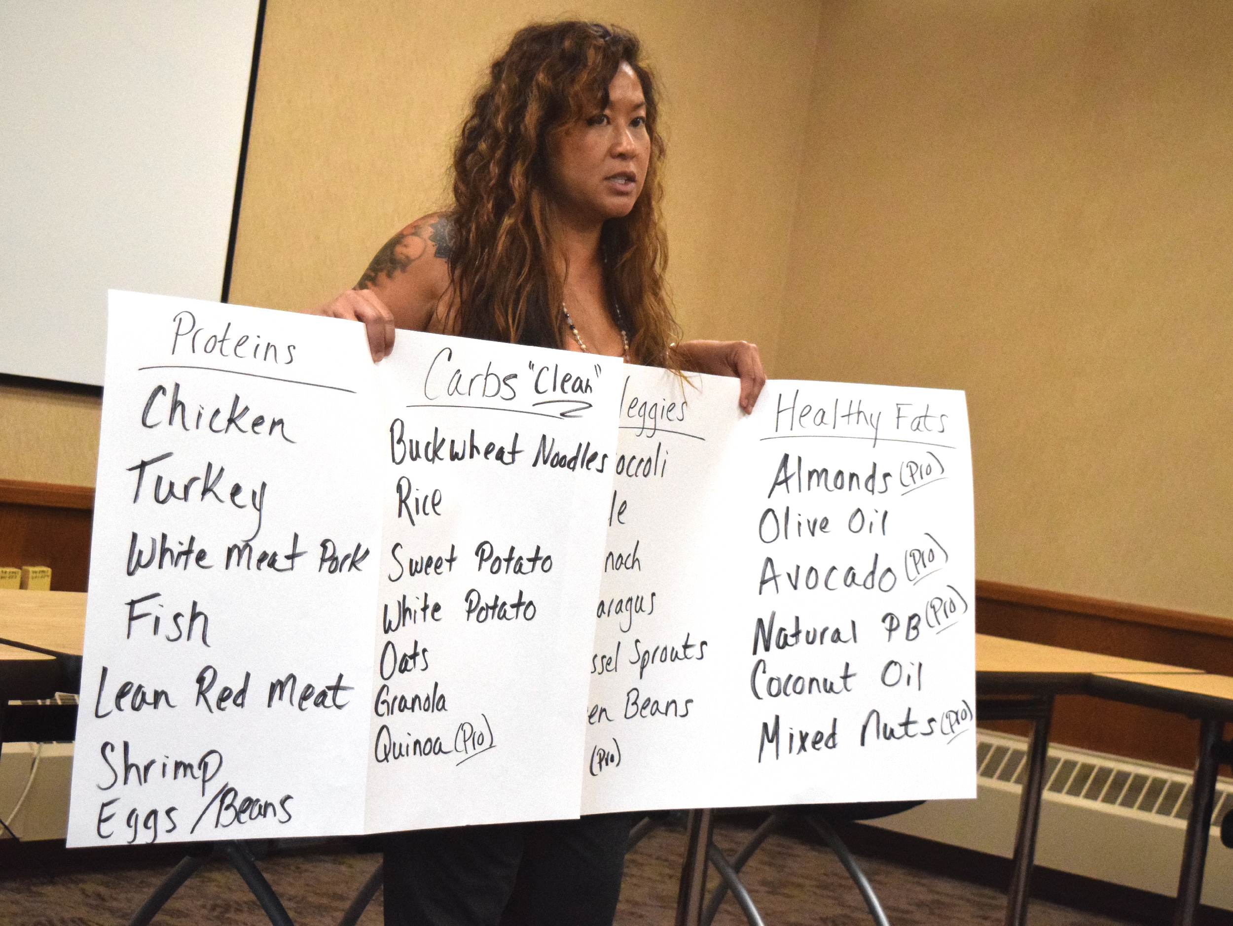 Viviane Khounlavong discusses the components of healthy meals during a class at Ohio University Southern on Monday. (The Ironton Tribune | Heath Harrison)