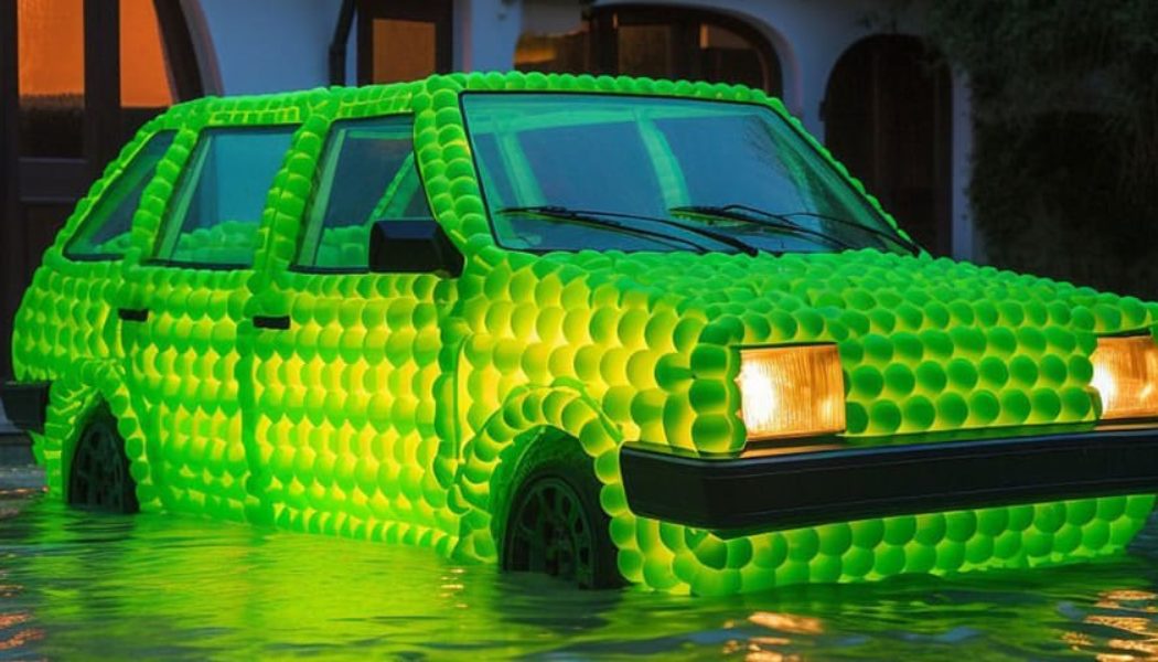 Titled “A Wah Di Bumper,” AK’s new project reimagines BMW cars such as the 5 Series E34 and 3 Series E30, along with a Volkswagen Jetta, Mercedes-Benz G-Class, and Austin Metro. AK’s new car designs cover them in seas of green, adding clouds of smoke along with inflatable detailing across motors that sit in front of local houses on the estate and swimming pools. “I used all of my favorite types of cars and imagined them in a way that I’ve always wanted to see them,” AK said.