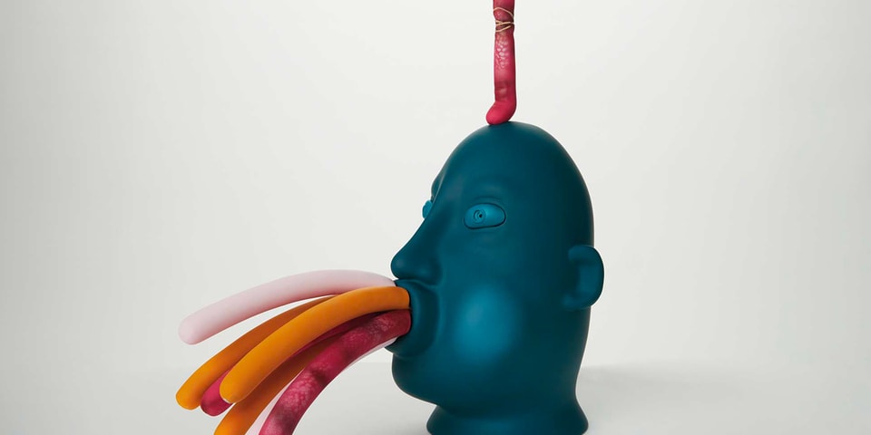Made from polyurethane and chrome on cast aluminum, Whalen creates universal avatars that are meant to reflect the wide range of human experiences. “Through unspoken words I like to create very ambiguous settings where the figures explore a suggestion of amusing enigmas,” said the artist in a statement. “The concept of being behind a window alone was interesting to me as it was a nice setting to play with the message in the painting. From finding beauty in grotesque objects such as a pickle, or having a tongue tied with a bow suggesting silence. I like to explore the quickness in highly expressive gestures that we come across daily.”