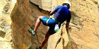 Martin Mumo, a tax advisor and fitness enthusiast, rock climbing at the Hells Gate National Park in November 2023.