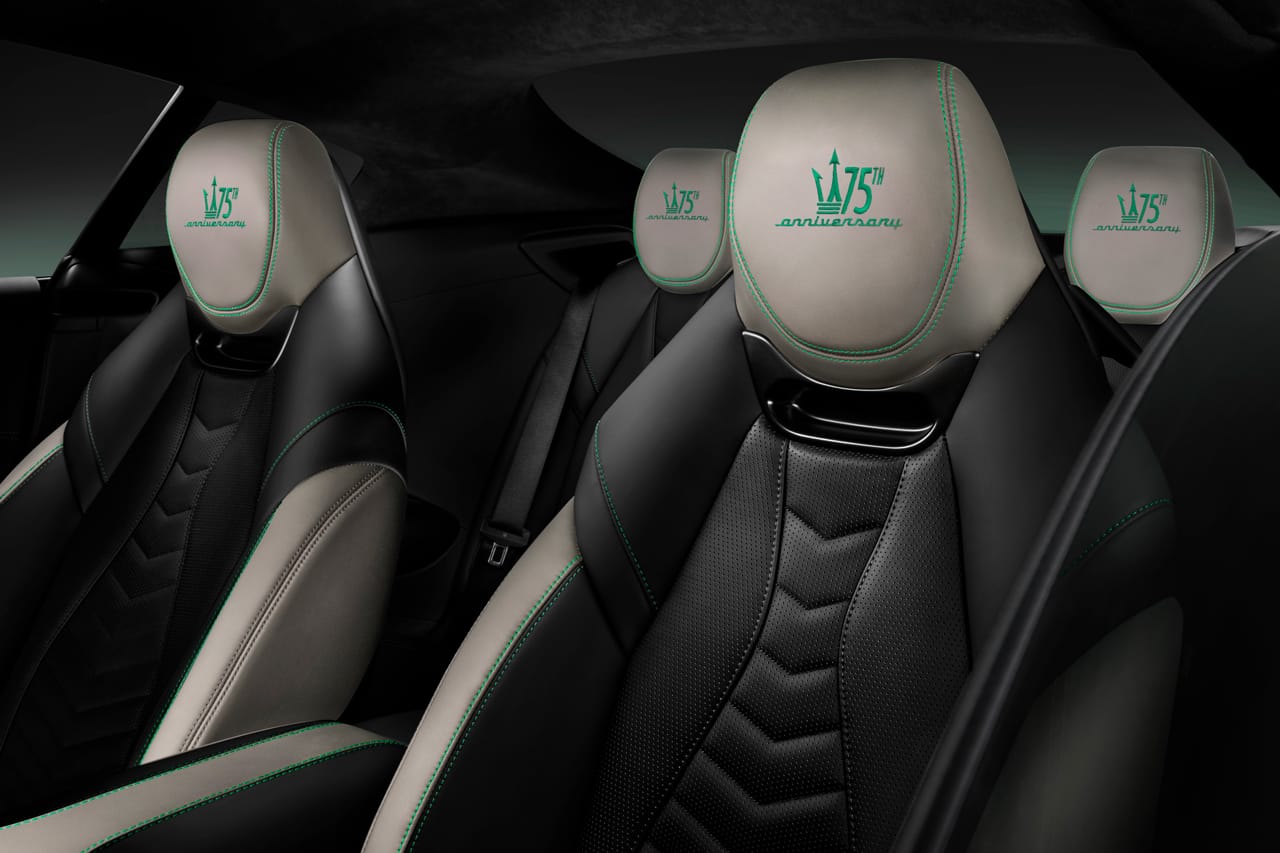 Honoring the GranTurismo’s decade-long evolution that has constantly encompassed its essential design pillars, each of the three original cars showcase a sophisticated combination of refined beauty with a forward-thinking technical anatomy. At the forefront of the masterpiece offering, Maserati issues the exclusive 300-piece GranTurismo Launch Edition PrimaSerie 75th Anniversary. Alongside a new 100% electric Folgore model in copper-tinted “Rame Folgore” and a bold Aqua “Blu Inchiostro,” the clean-lined anniversary edition comes in a second version containing an internal combustion engine.