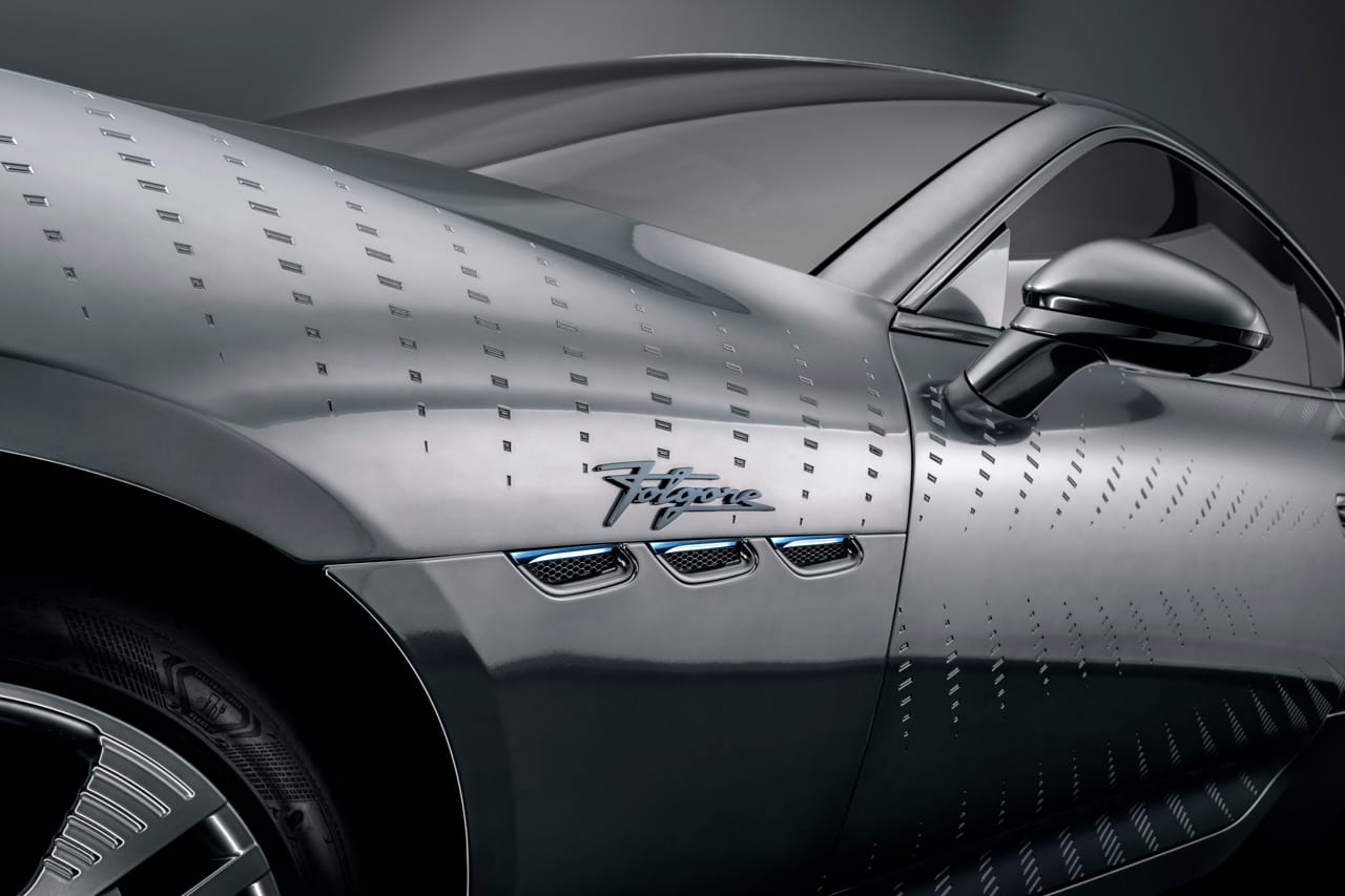The final design in the new line-up is titled the GranTurismo One-off Luce. From the “high frequency” engraving on its chrome body to the regenerated nylon ECONYL® interiors and full-electric Folgore engine, this sleek masterpiece weaves supreme car craftsmanship with progressive sustainability. As its intrinsic etching catches the light on the road – or in this case, the Milan showroom – the dynamic Luce provides an example of how Maserati are employing modern technology to encase its environmentally-friendly components, maintaining the GranTurismo’s timeless look.