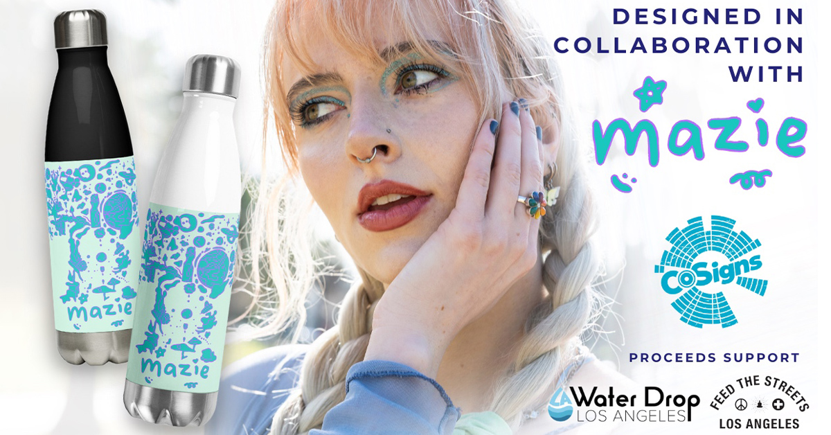 mazie isn’t just helping to provide a sustainable alternative to disposable plastic bottles and reduce plastic waste with this product, but creating a positive impact by donating the majority of proceeds to two non-profit organizations. One is Water Drop LA, which works to provide clean water and other necessities to thousands of individuals experiencing water insecurity in SoCal. There’s also Feed the Streets LA, a community-based mutual aid organization that distributes donated food, hygiene products, clothings, and more to those who need it most.