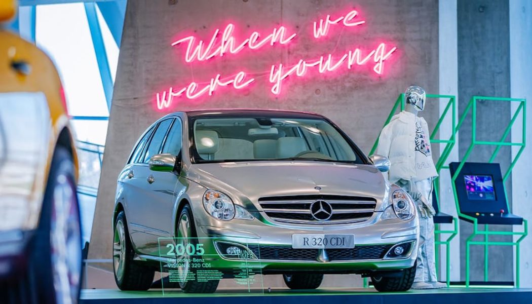 Ten carefully selected vehicles take center stage, each set within immersive thematic islands that reflect the spirit of their respective eras. Highlights include the SLK 230 Kompressor and CLK Cabriolet in the “Easy Life” section, the performance-oriented 190 E 2.5 Evolution II and SLR McLaren Roadster in “Supersonic” and the luxurious CL 600 and CLS 350 CGI in “Refinement.” Concept cars like the Vision R 320 CDI and Vision CLK 320 CDI Cabriolet bring futuristic flair, while the E 60 AMG channels the boldness of “Subculture.”