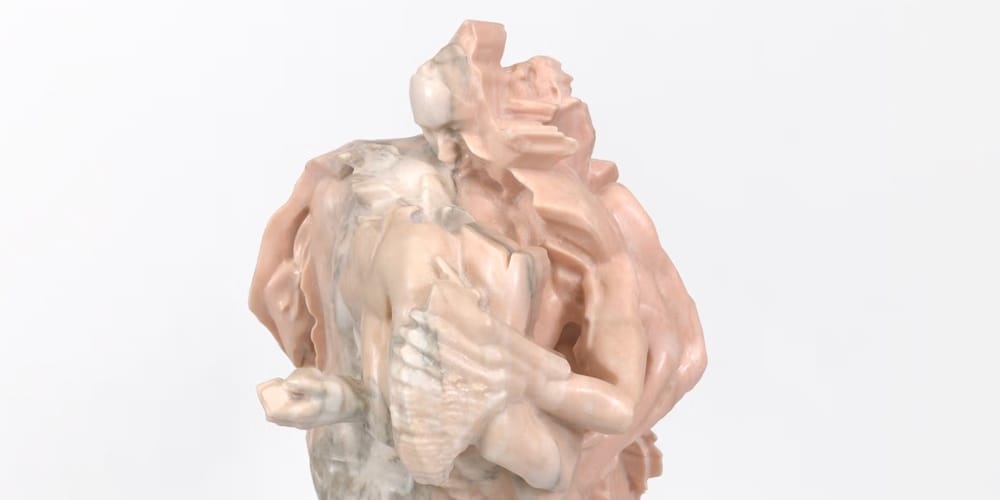 Entitled Desire Path, the exhibition transforms the gallery space into a dance of Carrara marble sculptures. The pieces were created by digitally mapping bodies in motion during Greenberg’s 2023 performance Fountain II, first presented at New York’s Pace Gallery. Using a hacked 3D scanner that limits its ability to self-correct, the artist captures fleeting moments of motion. The resulting scans are machine-carved into pink, black and white marble, then hand-finished by the artist.