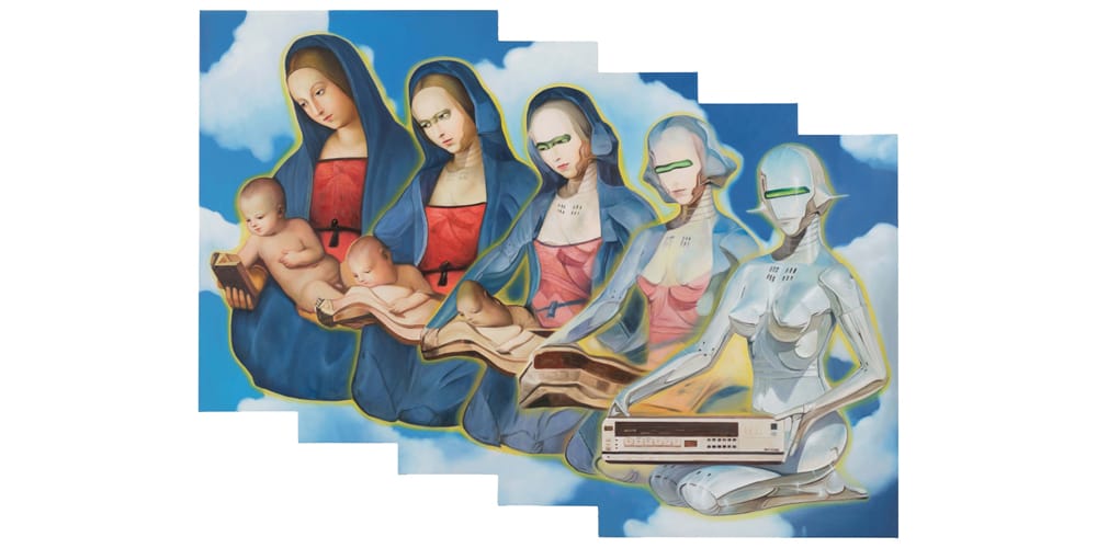 Also on view will be the “Animorph Painting” series which reimagines classical portraits through the lens of contemporary pop culture. Inspired by the covers of the beloved children’s book series, Animorphs, these works transform historical figures into modern icons – with Hajime Sorayama’s infamous “Sexy Robot” making an appearance – evoking the constant fluidity of beauty and art.