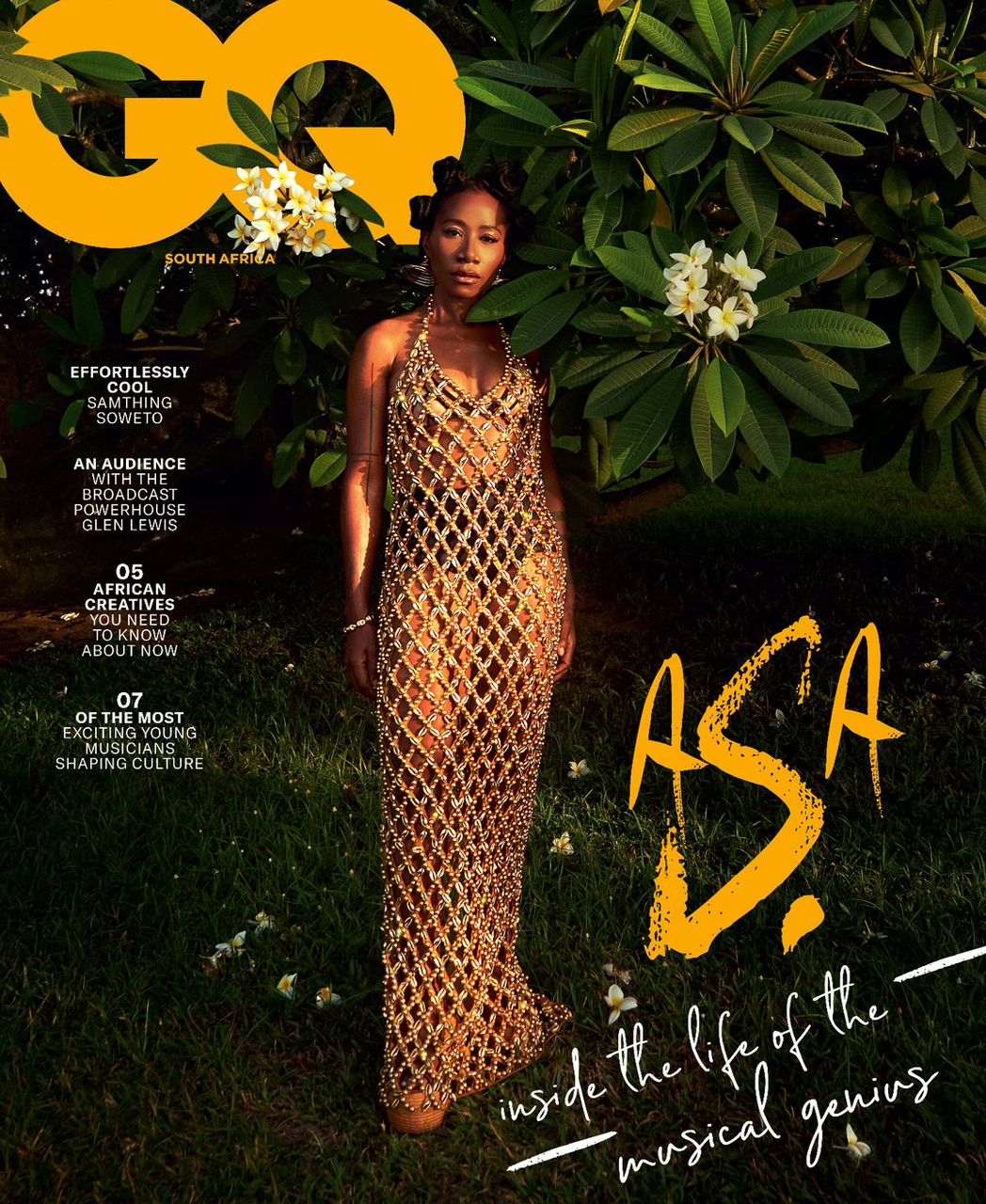 On the cover, Asa stuns in a beaded ensemble featuring cowry beads which leans into her cultural heritage as a Yoruba woman.
