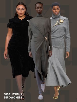 Another trend gaining momentum is beautiful brooches pinned to dresses, sweaters, and outerwear. While the accessory made its mark in the fall/winter 2024 shows, it truly took center stage in the fall/winter 2025 collections, especially at Tory Burch, Carolina Herrera, and Bevza. Once considered a dated jewelry-box staple symbolizing old-world elegance, the brooch has been reimagined in innovative ways, from oversize jeweled designs to playful custom pieces. These eye-catching accents not only add a personal touch to any outfit but also offer a unique opportunity to showcase individuality and craftsmanship.