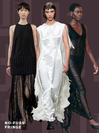 The fringe details at NYFW were far from the typical 1920s flapper style. Instead, they were elevated and effortless, had a luxurious look, and were paired with rich textures like silk and satin. One standout piece that caught my eye was Altuzarra’s stunning shirred dress, which was as light as air and flowed gracefully with the model’s movements. Fforme also showcased a collection featuring striking silk dresses adorned with fringe—a perfect piece for special after-dark occasions. Additionally, Bevza presented a black minidress with a woven braided hem, from which long, hairlike fringe details extended. For those intrigued by fringe fashion, the four pieces below provide an excellent introduction to this spirited style.