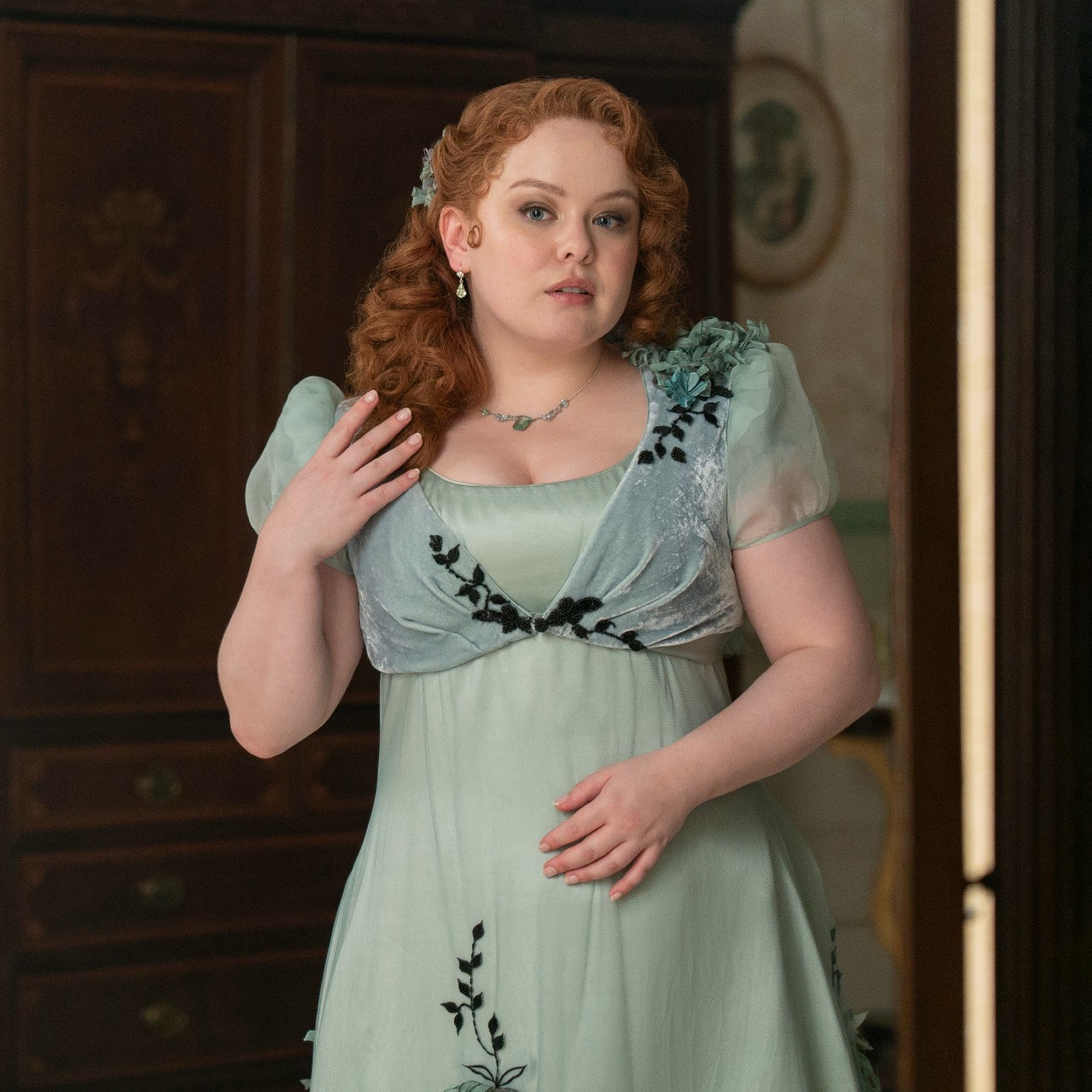 The latter is basically the hallmark of the third season. Take it from Penelope Featherington herself! “Everyone is damn glowy,” Nicola Coughlan says of her time on set during an installment of Vogue’s Beauty Secrets. “Jessie Deol, who did my makeup this season, would make my skin glow in a way that I can never do.”