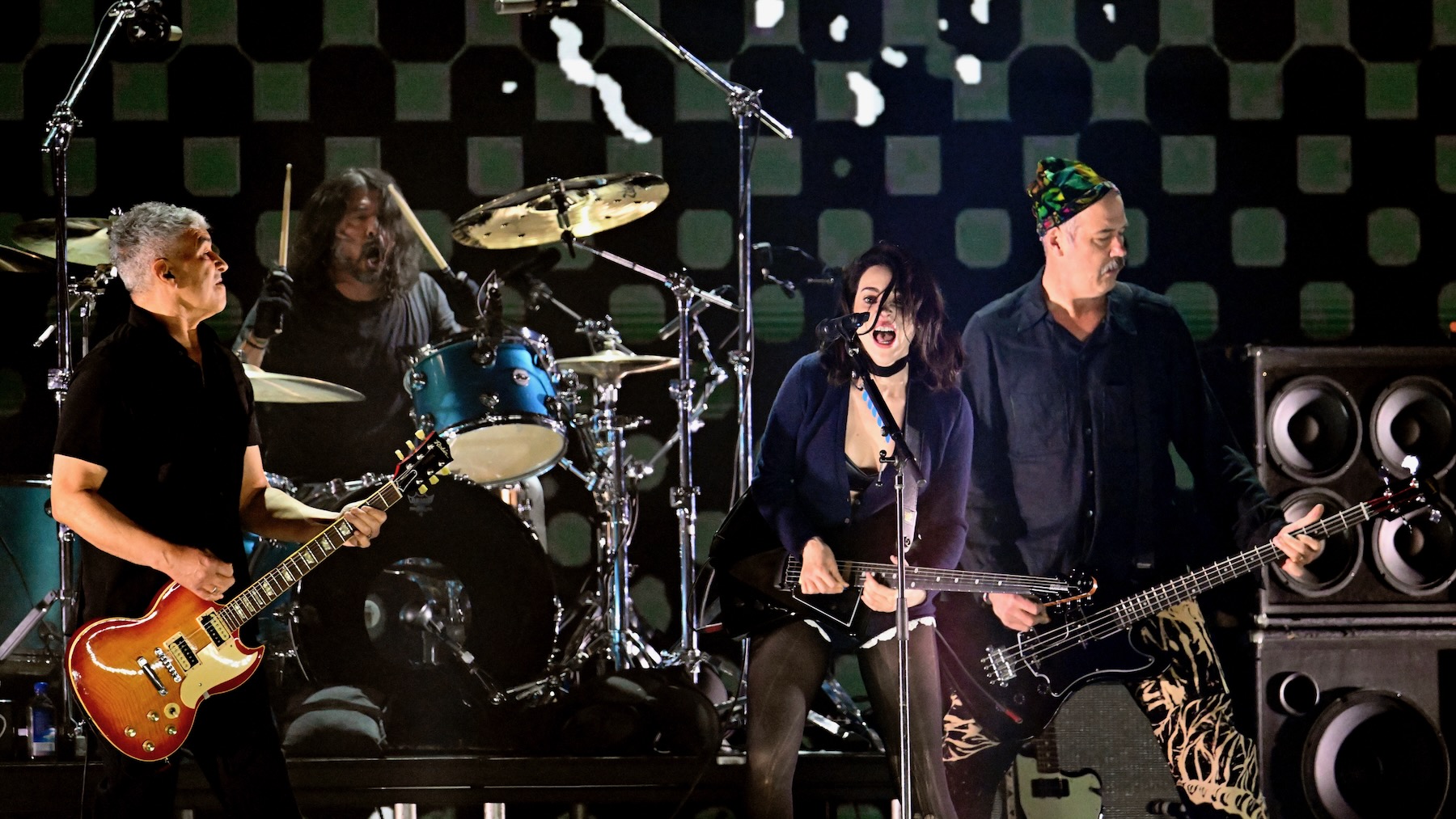 Gordon was next to fill in for the late Kurt Cobain, taking center stage to perform “School.” After her, Novoselic introduced Jett, who led a rocking version of “Territorial Pissings.”