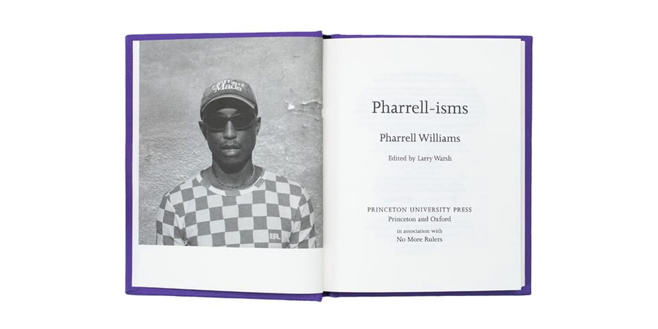 Published by No More Rulers (NMR) and Princeton University Press, Pharrell-isms is the latest entry in the ISMs series, which includes past volumes on Jean-Michel Basquiat, Ai Weiwei, Virgil Abloh, and Daniel Arsham. Playing in line with past titles, the book is edited by NMR founder Larry Warsh and comes in a sleek purple pocket-sized format.
