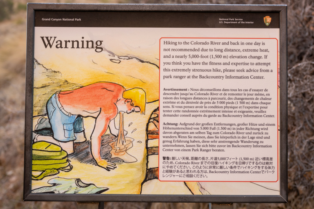 However, every year, hundreds of people ignore the advice and often have to be rescued from the trail. Incidents usually occur on the way back up the steep canyon and are nearly always due to exhaustion and/or dehydration as summer temperatures – even in the shade – routinely pass 38°C (100°F). So far this year, there have been at least three deaths along the trail.