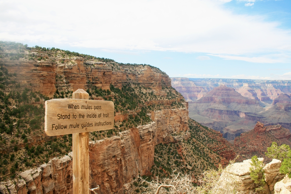 Even day hikers only attempting to walk part of the trail have been known to underestimate how far down the canyon they’ve walked and then struggled on the way back up. Hikers must also contend with mules that regularly ply the narrow path.