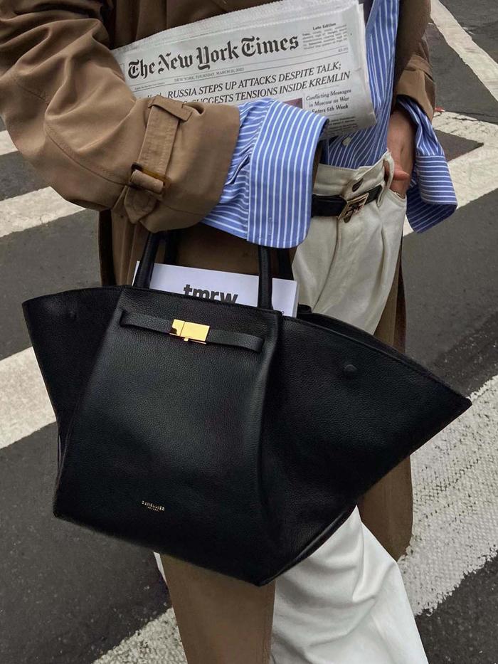 I know I’m a fashion editor and some might consider what I’m about to say sacrilegious but, personally speaking, I’m not all that into high-end designer bags. Of course, I’d never kick a Chanel out of bed, nor refuse the gift of a Lady Dior point blank; I would simply rather spend my money on something else. What I do advocate for, however, are affordable luxury bags. Of course, what constitutes as “affordable” to one person will vary greatly to another, and I can possibly determine what that will mean to you specifically but, for arguments sake, let’s agree on £500 or less. It’s still a significant amount of money, no doubt about it, but it is a figure I’d be prepared to save for should the right handbag come along. Cue DeMellier’s New York tote bag.
