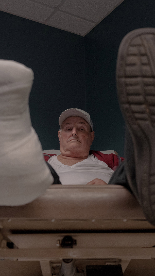 “It starts from the bottom up,” Dr. Girnys said, explaining how patients arrive with diabetic wounds on the foot that refuse to heal in part because of diminished circulation when blood sugar is not meticulously managed in a person with diabetes. Dr. Girnys initially tries to clean and treat the lesions, but they grow deeper, until he has to remove a toe.