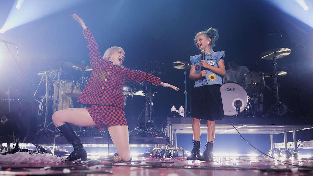 For the uninitiated, it’s tradition at Paramore shows to bring a special guest onstage to sing the bridge of “Misery Business.” With a handmade sign reading “pick me!,” Riley caught the attention of Williams, who then instructed the crowd to “scream louder than you ever have for Paramore.” From what we can tell, the audience certainly obliged.