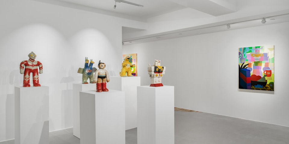 Based in Los Angeles, Taylor Lee is a ceramicist who has a penchant for creating glazed sculptures that depict various abstracted female forms, but has recently diverted her attention to popular Japanese icons, such as Godzilla and Gundam. For the latest exhibition, Lee chose to experiment with a new glazing technique known as Raku, where she would remove the ceramic objects from the kiln while still glowing red and place them in a flammable material, such as newspaper. As the object catches fire, the Raku process produces a wide range of lustrous, dramatic colors and textures, which can be seen throughout her art in the exhibition.