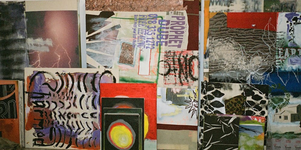 - Collage art, abstract painting and sculpture inspired by skate culture and natural landscapes