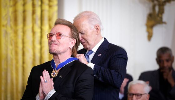 U.S. President Joe Biden awards U2 singer Bono the Presidential Medal of Freedom.