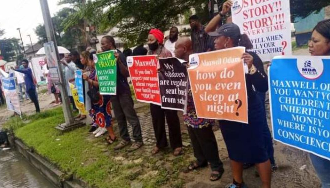 The victims of a collapsed forex firm in Port Harcourt, Rivers State, MBA Trading and Capital Investment Limited, on Sunday, protested the continued nonaction from the company’s boss, Maxwell Odum, two years after a promise was made that they would be paid.