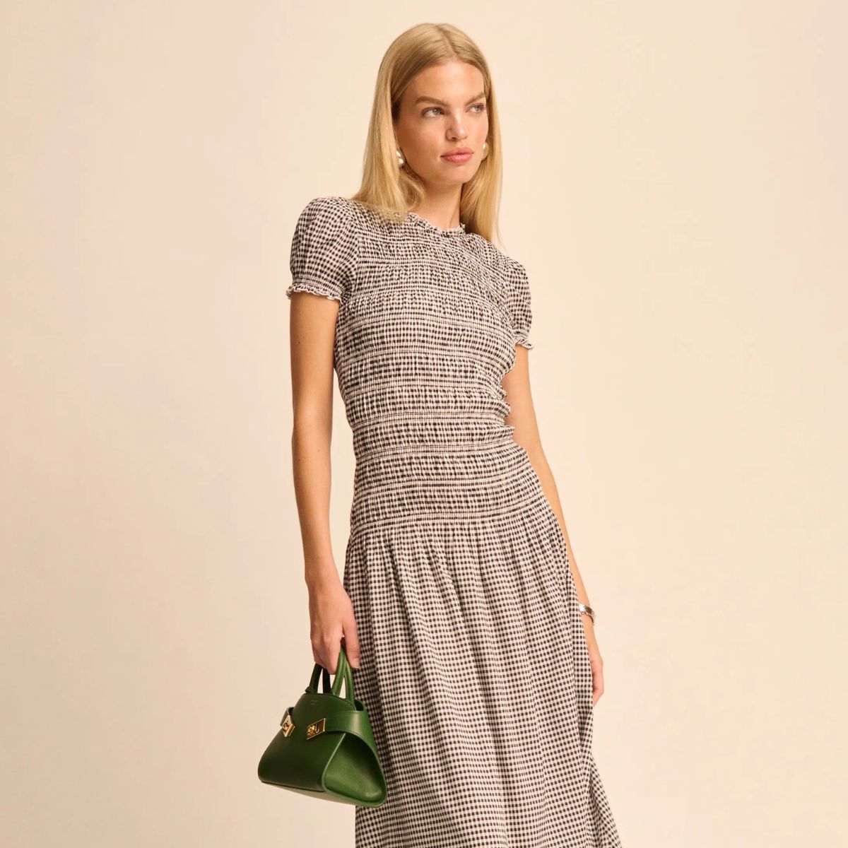 Shirred dresses are a classic for a reason, and Reformation brings a contemporary edge with a dropped waistline.