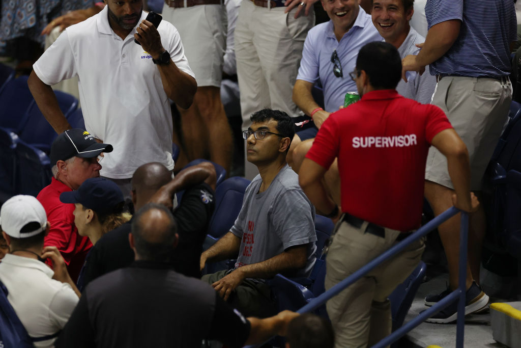 According to the U.S. Tennis Association, three of the four protestors escorted out were women, and the fourth took more time because they “affixed their bare feet to the floor of the seating bowl.”