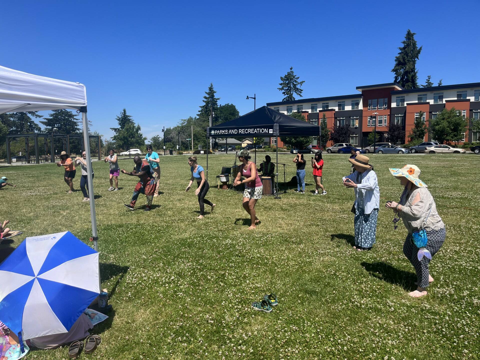 On July 8, the Gansango Company played West African music, mostly from Benin, Ghana and Togo at the Sunset Neighborhood Park to an entertained young crowd.