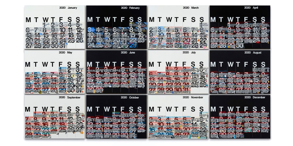 Initially, viewers are drawn in by a series of calendar paintings that contain unique art and typographic messages within each date box. This project started back in 2014, when the artist used to scribble inside jokes, lists and deadlines in his Massimo Vignelli Stendig calendars. Fast forward to the present and the calendar itself became a central focus in the artist’s practice — from silkscreening the calendar surface onto canvas and transcribing his thoughts on the final days of the Trump presidency, to recording personal events in the artist’s life and his grappling of the COVID pandemic.