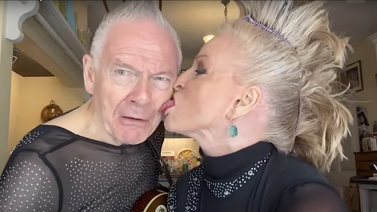 Sporting matching mohawks, the married pair pay homage to the godfather of punk, Iggy Pop, with a playful rendition of the Raw Power tune. Robert plays the song’s iconic guitar licks while Toyah sings and dances seductively around her husband. It all culminates with Toyah slowly licking the side of Robert’s face.
