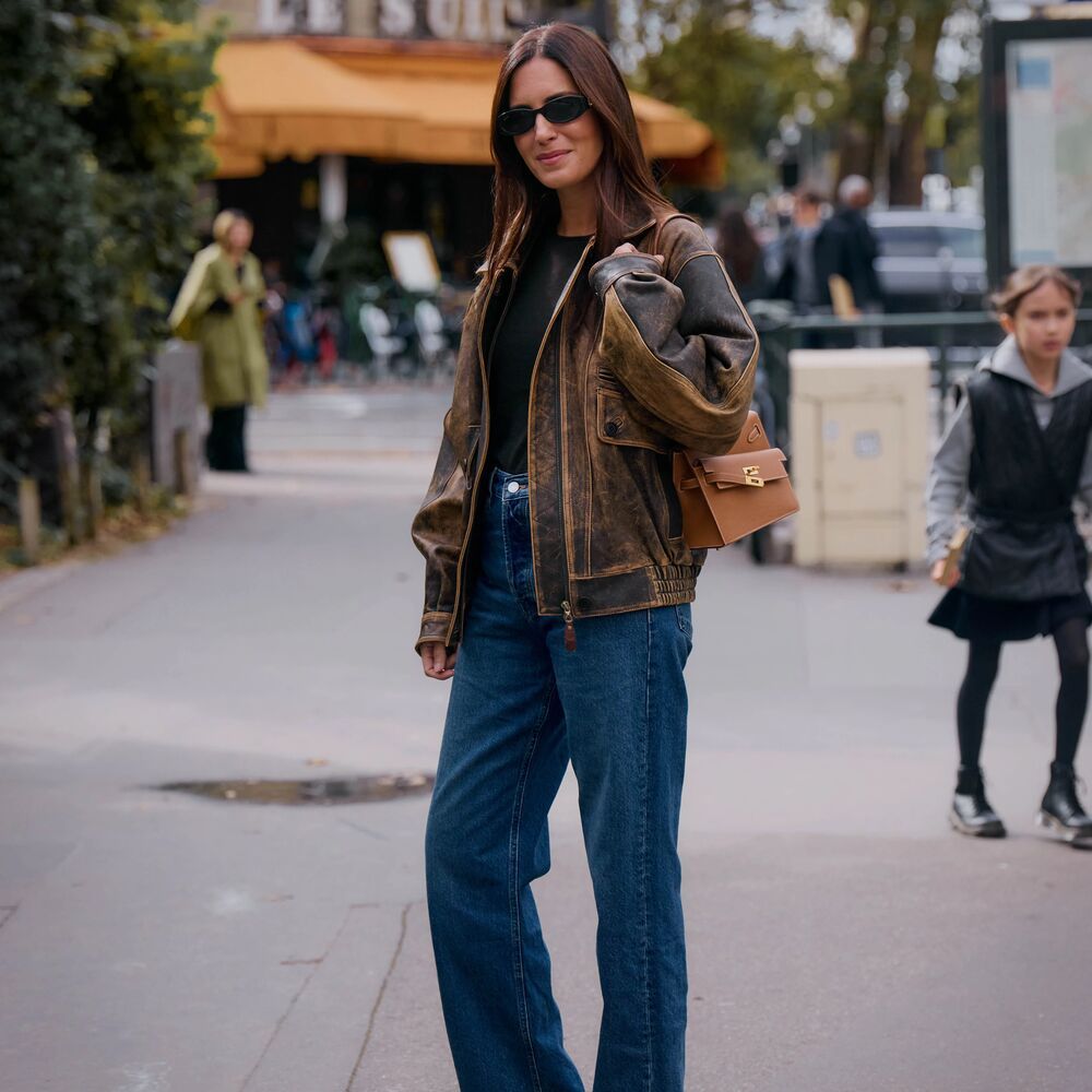 Style with straight-leg jeans, a lace-trim camisole, and a leather jacket.