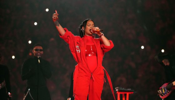 Rihanna also appeared to reveal baby bump number two on stage. Her pregnancy was later confirmed by her rep. The superstar also plugged her brand Fenty Beauty on stage, which saw a massive 1,860% spike in searches worldwide after she touched up her makeup during the setlist.