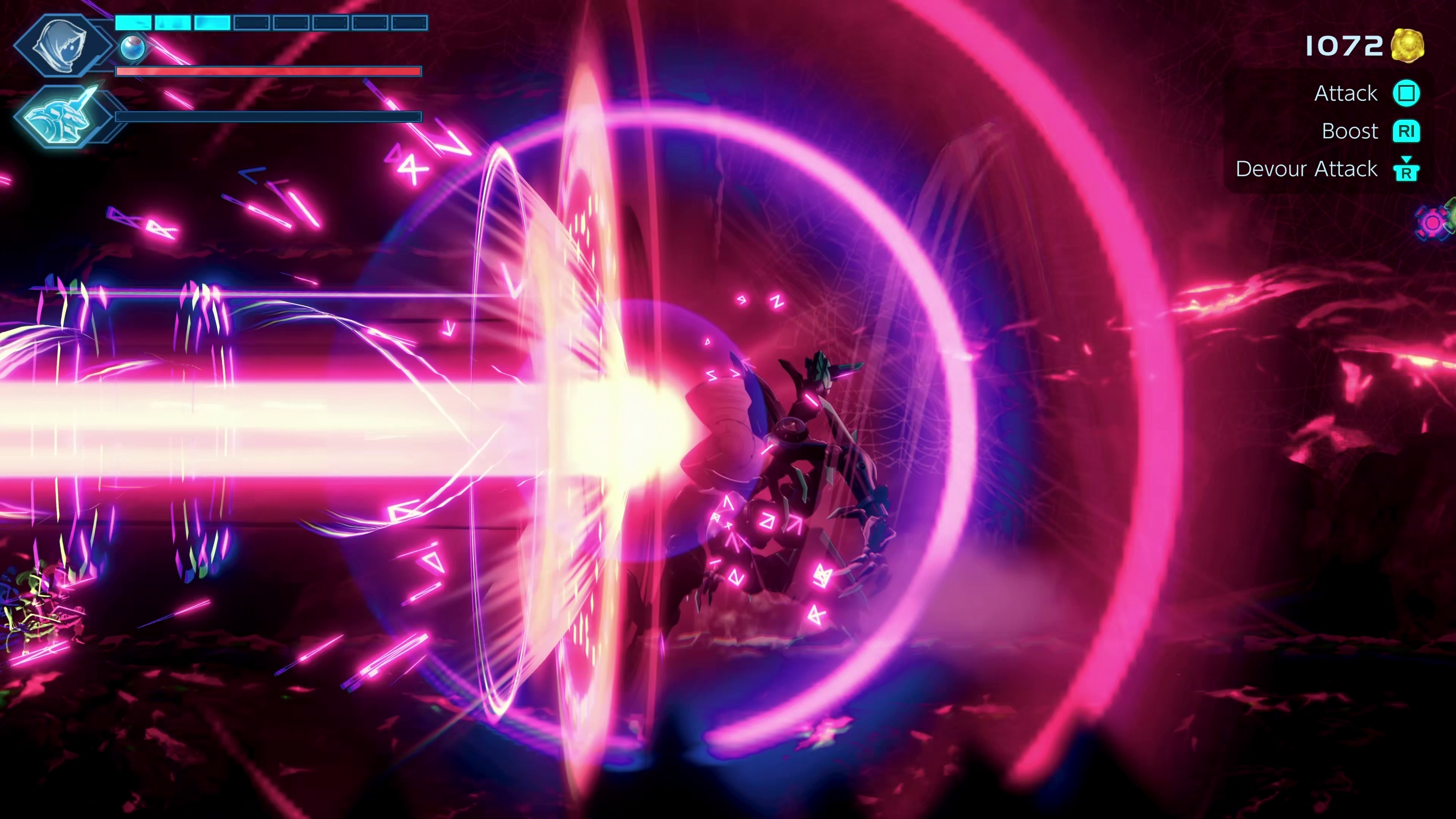 Combat and movement in the game rely on a stamina system that can be refilled after you soften up an enemy and turn into Puck to devour them. You can also stick to certain surfaces after refilling your stamina.