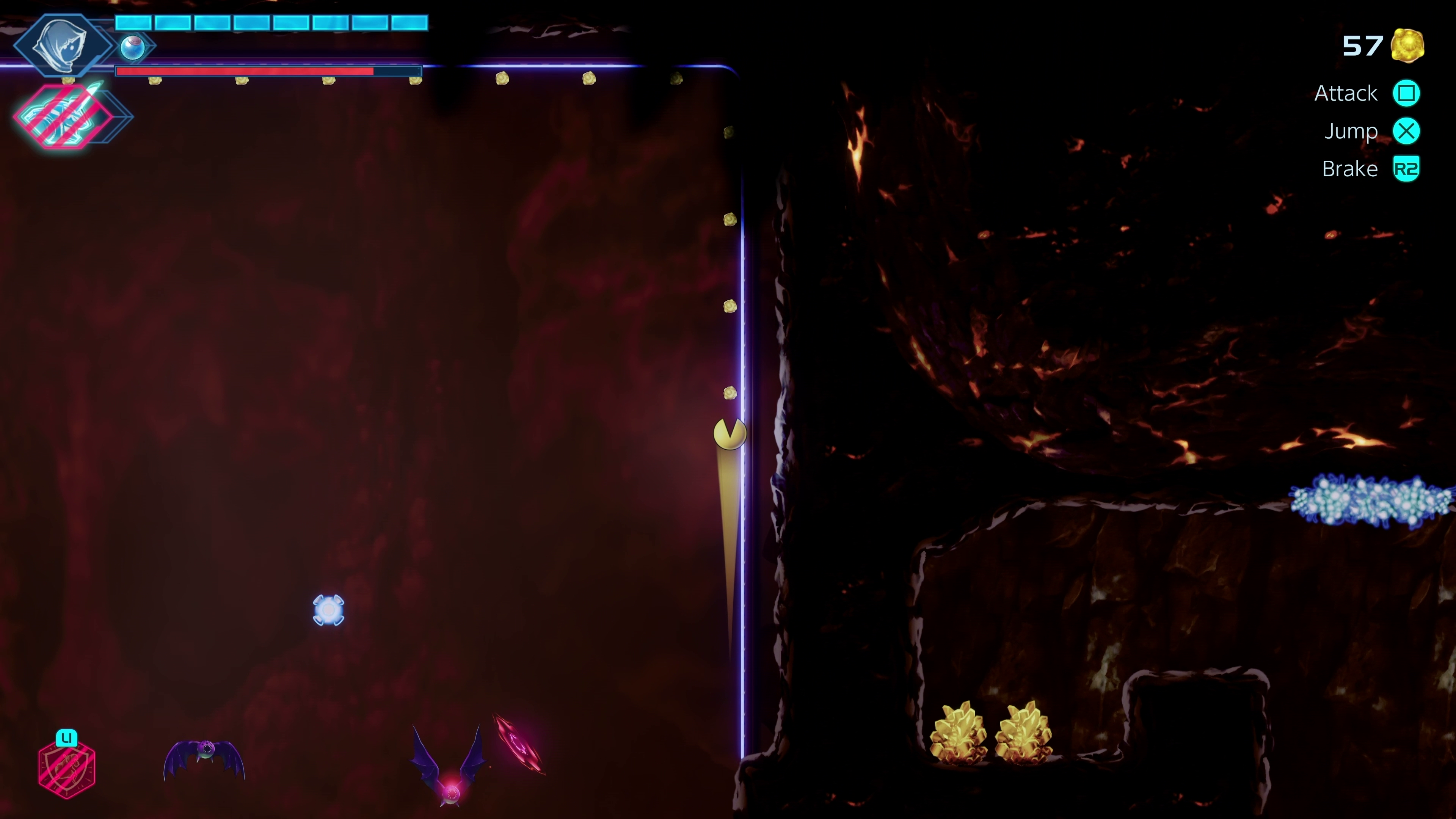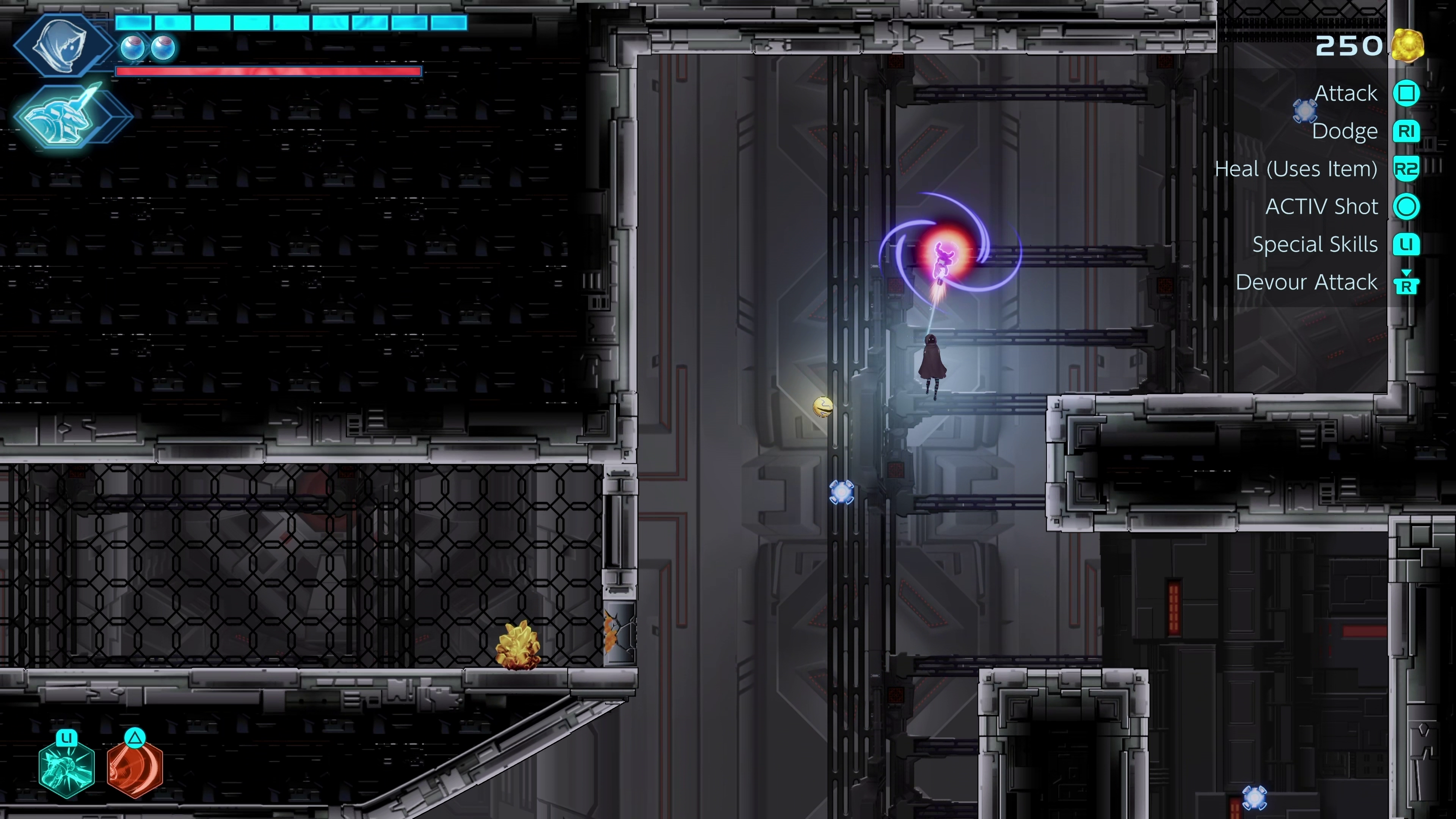 Later, you will obtain upgrades, like an extension for your grapple hook, that will open up areas you didn’t have access to. This premise is a core feature of all Metroidvania-type games.