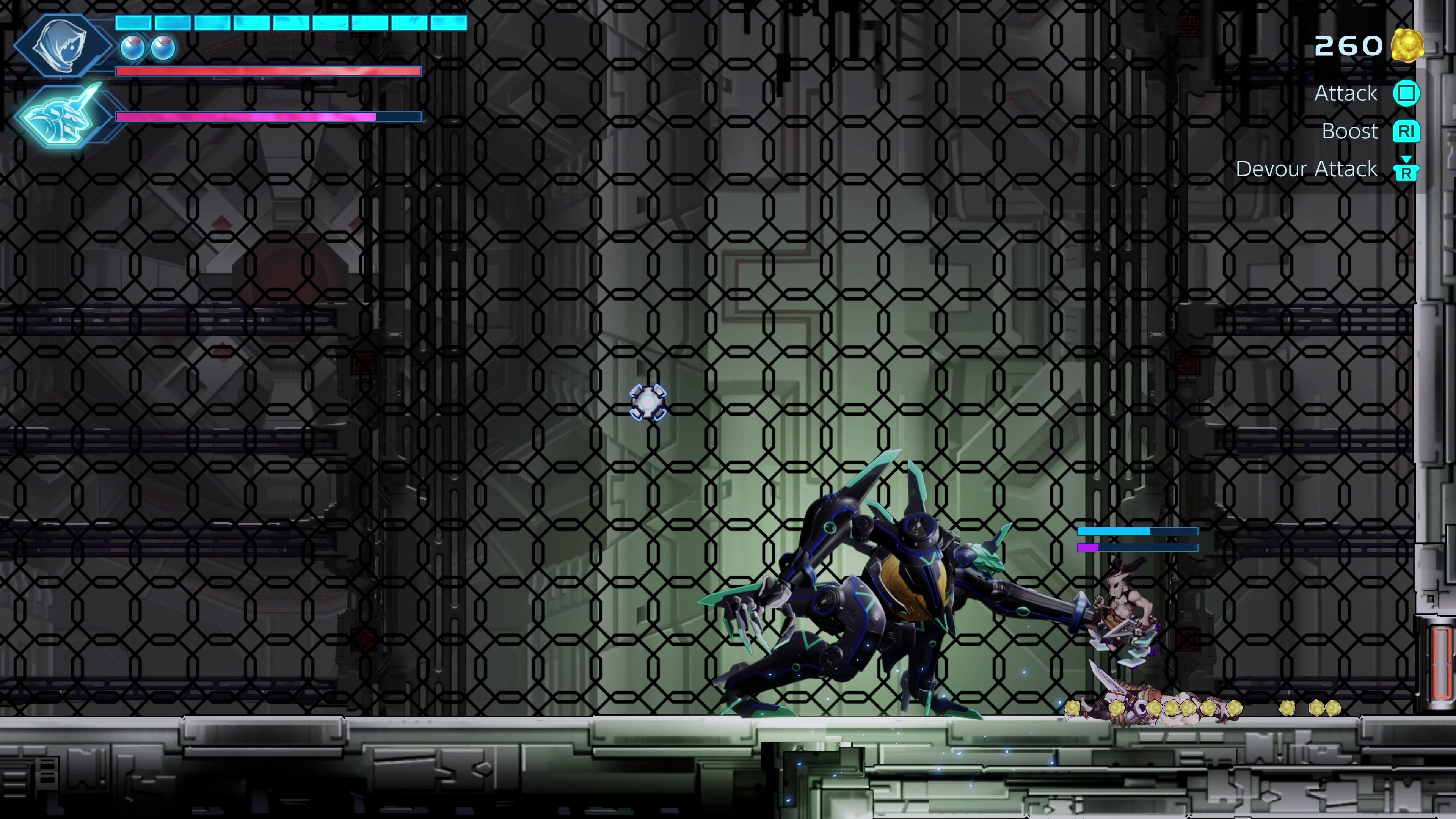 The one feature that caught our attention was when we saw the Swordsman and Puck come together to become a giant mech. In this mode, you are not confined to only boss fights; you can also use it against regular enemies, which seems overkill but is still fun.