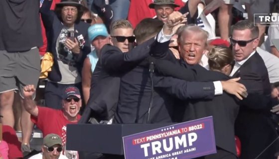 Trump is currently being treated at a local facility and was reportedly injured in the ear and head area. Dramatic images online show Trump being tackled by agents with the American Flag flying behind them amid the confusion.