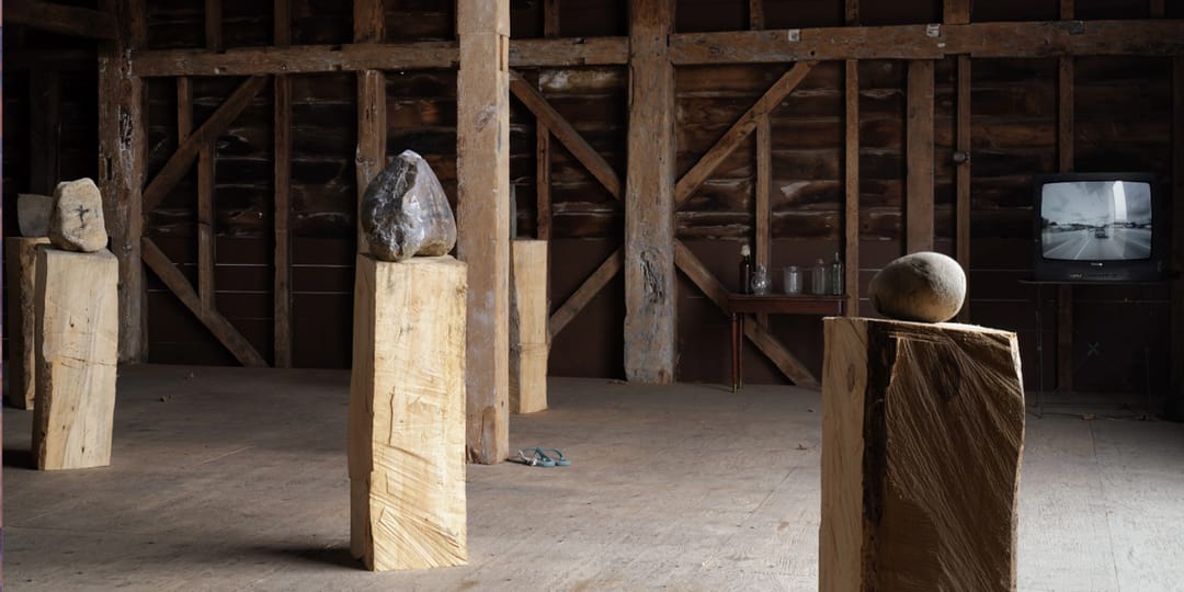 The show explores the ecology, industry and memory in the Hudson Valley and its ties to New York City, looking to its layered histories and the immediate environment as muse: Imhof’s industrial water containers nod to the tension between nature and human intervention, while Brian Jungen’s sculpture— cast from melted metal found in the remnants of his studio after it was destroyed by wildfires — grounds the exhibition in real-world urgency.