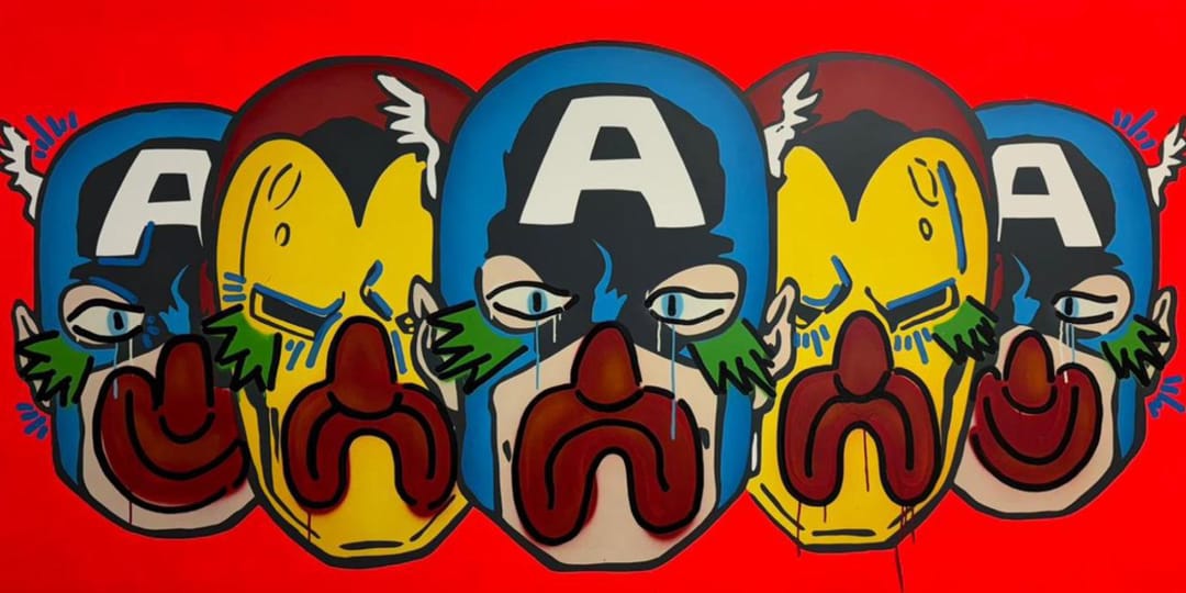 Fresh off their TABOO drop, London’s new iconoclast duo Slawn and Opake are back together for an immersive showcase at Wynwood’s Art of Hip Hop, just in time for Miami Art Week. Running from December 3 through 31, their new exhibition, Heroes, Villains and Violence, pushes deeper into the chaotic, self-mythologizing universe the two have been building together, taking heavy cues from both pop cultural spectacle and personal narrative.