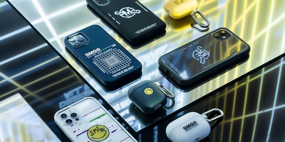 The name for lifestyle label SMG is an acronym for the concept “Still Moving Under Gun Fire” which recognizes the stress and volatility of life while encouraging people to still move on under the constant gunfire of modern society. Continuing its cyberpunk themes from its FW21 “Parallel Continuum” collection, the protective case capsule transforms abstract concepts of virtual reality, time, and space, into a matrix of digital graphics which are displayed alongside its smiley face logo.