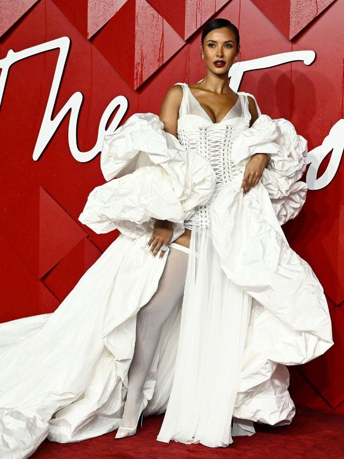 Tapping into the growing bridal trend, our favourite celebrities including Pamela Anderson, Anne Hathaway, Maya Jama experimented with whites, creams and beiges, in lieu of traditional winter tones such as black, white or brown for the occasion.
