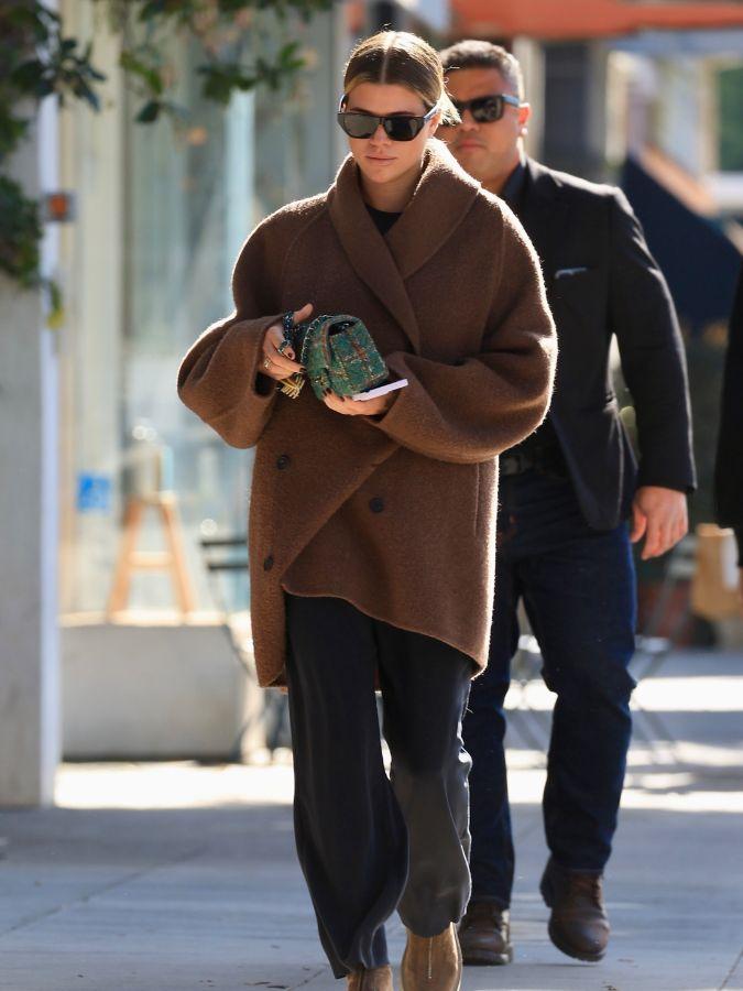 Sporting the trend most recently, style icon Sofia Richie was spotted in Beverly Hills wrapped up in The Row’s Polli Wool-Blend Jacket. Whilst the cover-up comes in rich black and mellow taupe, Richie picked the warm chocolate brown for her walk in L.A. For its naturally rich tone that layers beautifully with lashing of gold jewellery and neutral bases, chocolate brown coats have become a celebrity must-have this season.