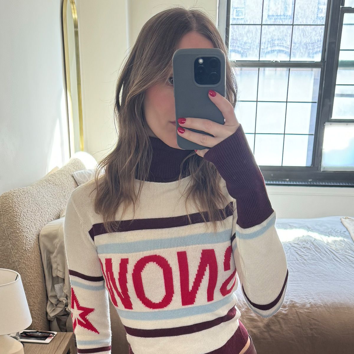 I’m a minimalist dresser most days, but when skiing, I prefer my outfits to be playful. These star-printed thermals perfectly fit that vibe. They not only give off that quintessential Perfect Moment look but also make me feel like I can ski the black runs, even though I definitely can not. The black-and-white colorway looks expensive, but it’s versatile, pairing well with my black Moon Boots and layering stylishly under the black puffer jacket.
