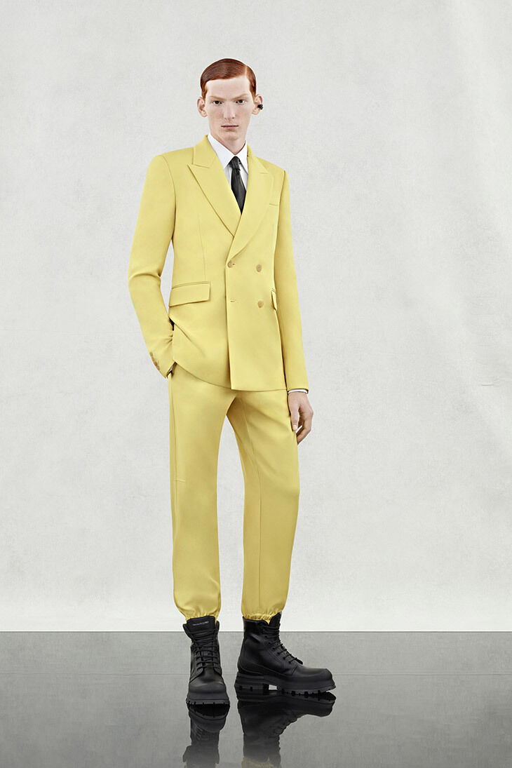 Cut, proportion, and silhouette take the forefront in the minimalist luxury fashion collection. Emphasizing the notion of “refined simplicity,” Alexander McQueen plays with rounded or sharply defined shoulders and narrow waists. The capsule is comprehensive, featuring a range of overcoats, trench coats, parkas, leathers, denim, shirts, and shorts. The designs reflect “a softer, more molded, and curved approach” compared to previous anatomical investigations. Drawing inspiration from archive McQueen pieces, the collection incorporates ceremonial embroidery, soft appliquéd harnessing, hand-crocheted knits, and chiaroscuro flowers.