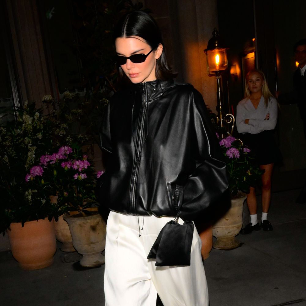 Stepping out in a glossy cream pair, Jenner styled her trousers into a sophisticated evening ensemble I’ll be emulating all season long. The crisp cream satin added softness and fluidity to her look, offering a soft contrast against a jet-black leather jacket. Continuing the monochromatic mood, she accessorised with sleek black sunglasses, pointed-toe heels and a supple satin bag—ditching the typical lightweight cotton dresses of summer in favour of something infinitely more polished.