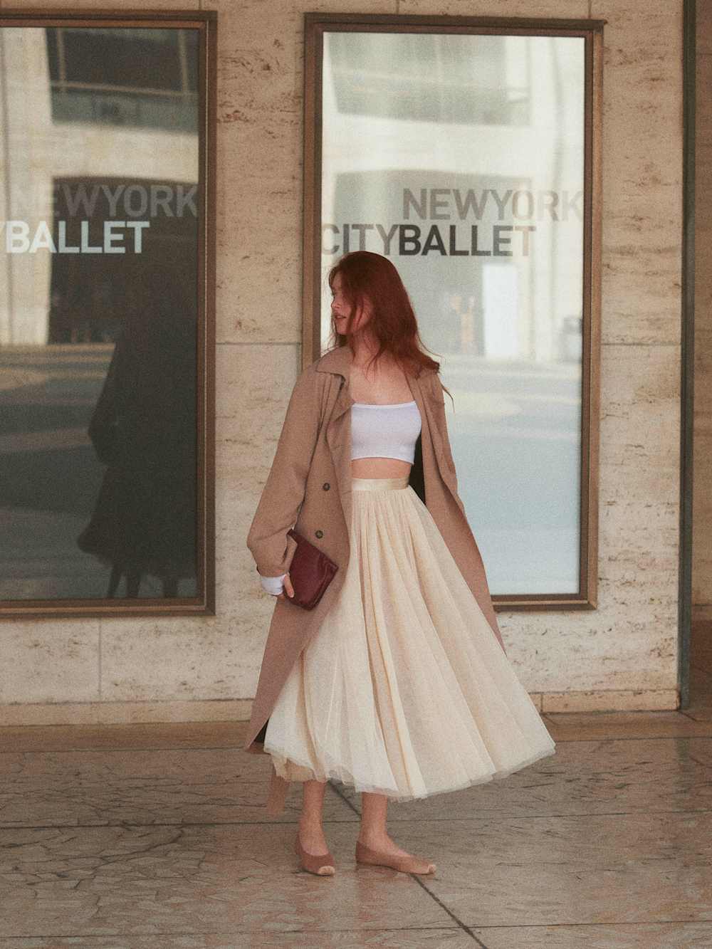 Now, I can’t stop thinking about adding a tulle skirt into my own rotation. With its ballerina-like swish and dreamy silhouette, brands like Reformation and Free People are already on board, offering up some truly beautiful options in soft pastels and layered neutrals.