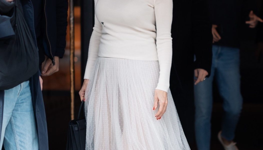 Forgoing fuss or over-styling, she paired the skirt with a simple turtleneck, proving just how transformative the skirt can be. Had she worn her knit with denim or a structured pencil style, the magic might’ve been lost. But the frothy tulle added a whimsical mood that made her ensemble stand out.