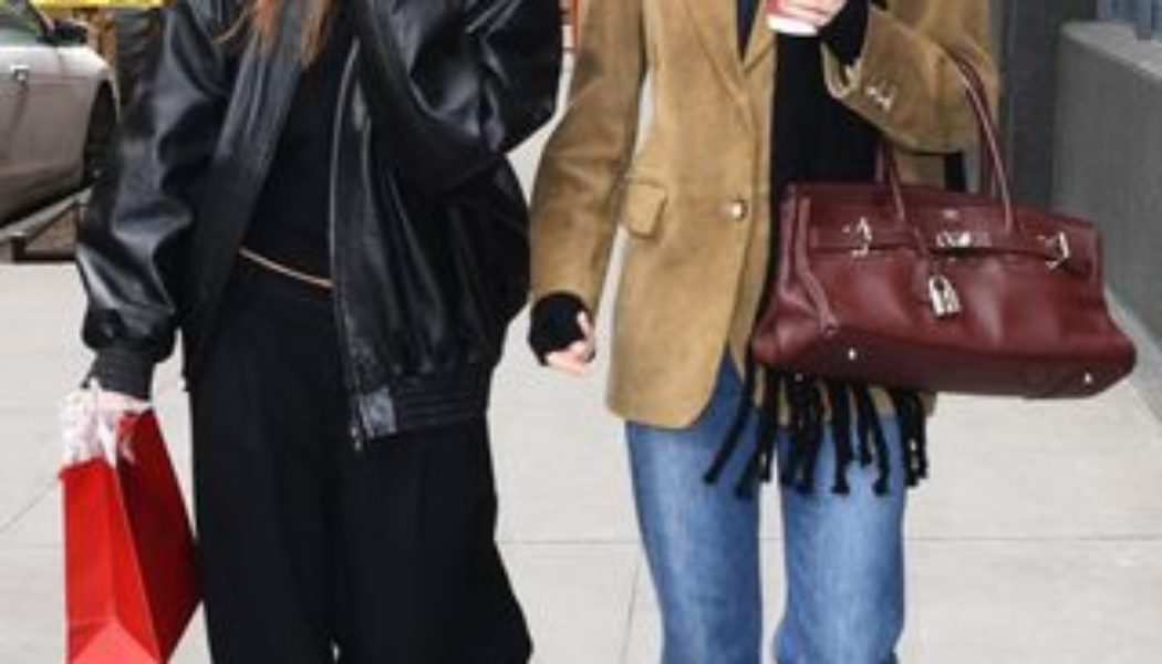 Spotted in NYC this weekend, Bieber and Jenner showcased how to master the art of layering black tops under outerwear. Bieber, ever the minimalistic dresser, paired a sleek black crewneck sweater with a leather bomber jacket, wide-leg pants, and loafers—striking the perfect balance between refined and effortlessly comfortable. On the other hand, Jenner opted to elevate a black tee with straight-leg jeans, a suede blazer, a chunky scarf, loafers, and an east-west bag.