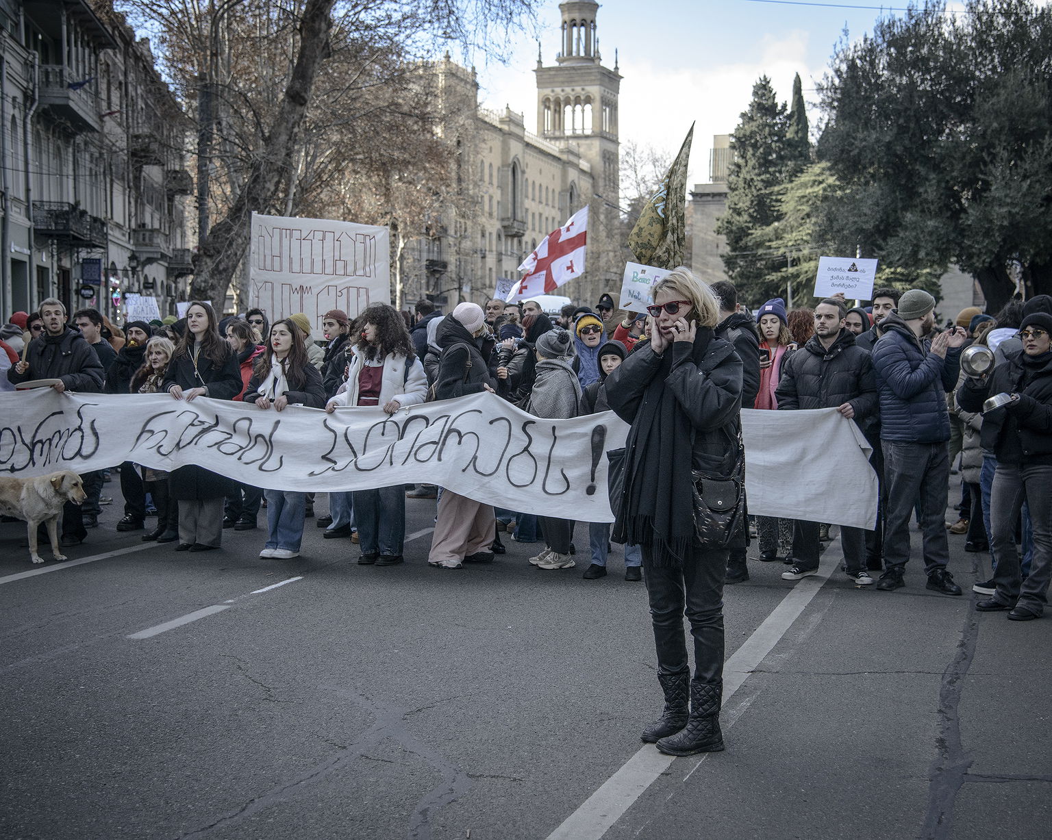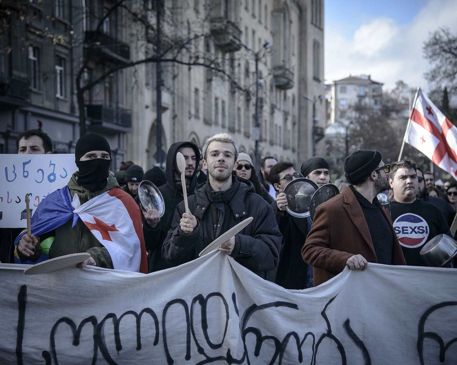 It has been more than a month of nonstop nightly protests here in front of Tbilisi’s Parliament building, the stage of every mass demonstration since 1989, when Soviet forces mowed down 19 people during a rally for independence. If the winter cold is taking a toll on us, you’d never know by the polyphonic songs people are singing, by the traditional dances, noisemaker horns and whistles. The frigid December nights are just a given, like the water cannons and tear gas unleashed to keep us away. But it’s been two months since the pro-Russian Georgian Dream party claimed victory in contested parliamentary elections, and we just keep coming back in larger numbers.