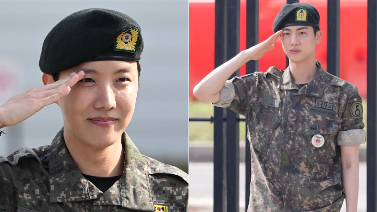 While the members weren’t able to gather in full to usher j-hope back to civilian life, Jin was on site during the discharge to help his bandmate greet the press.